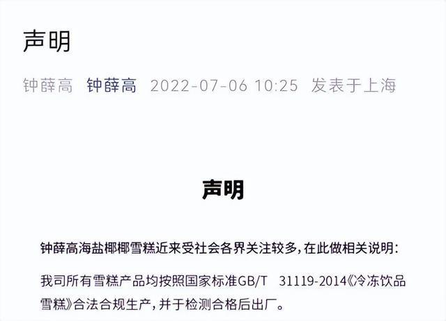 钟薛高不得时隔三天再次发声明称,所有雪糕产品均按照国家标准合法合规生产,并认为用烤雪糕、晒雪糕或者加热雪糕的方式,来评断雪糕品质的好坏并不科学。